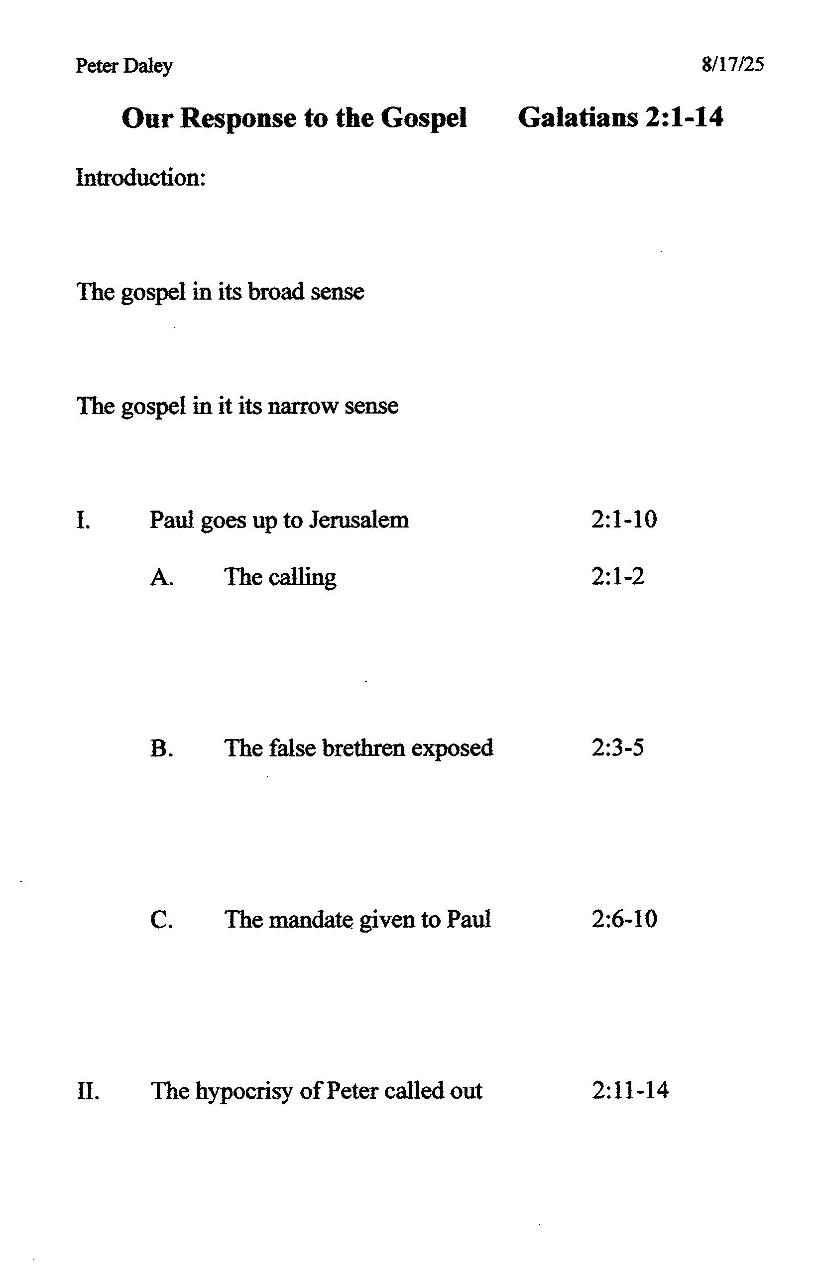 Peter Daley 8-17-25 Galatians 2 1-14 (Handout)
