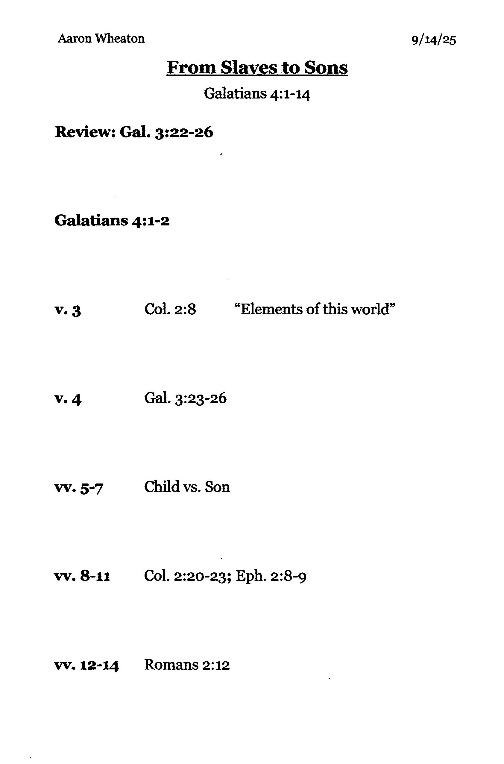 Aaron Wheaton 9-14-25 Galatians 4 1-14 (Handout)