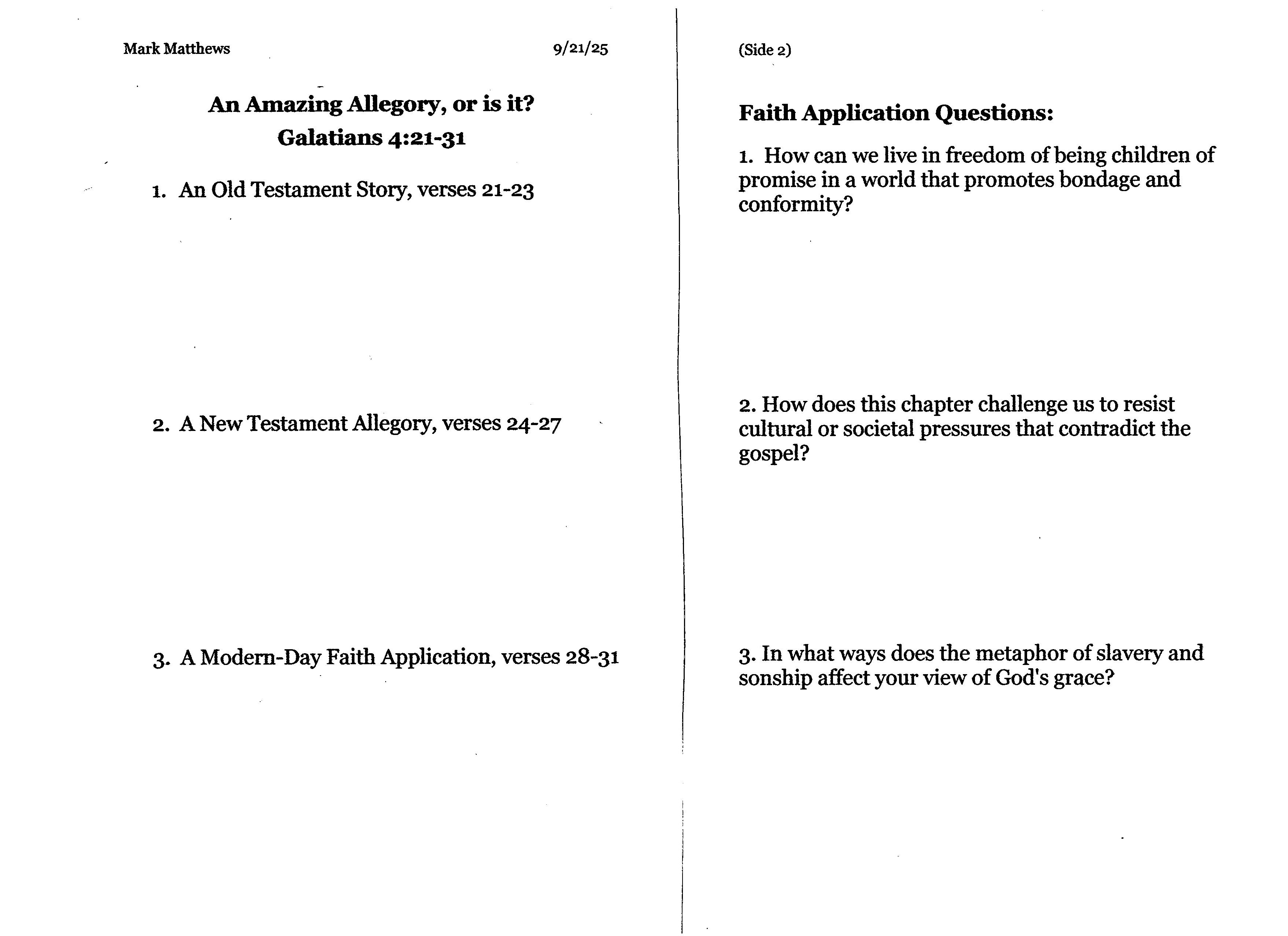 Mark Matthews 9-21-25 Galatians 4 15-31 (Handout)