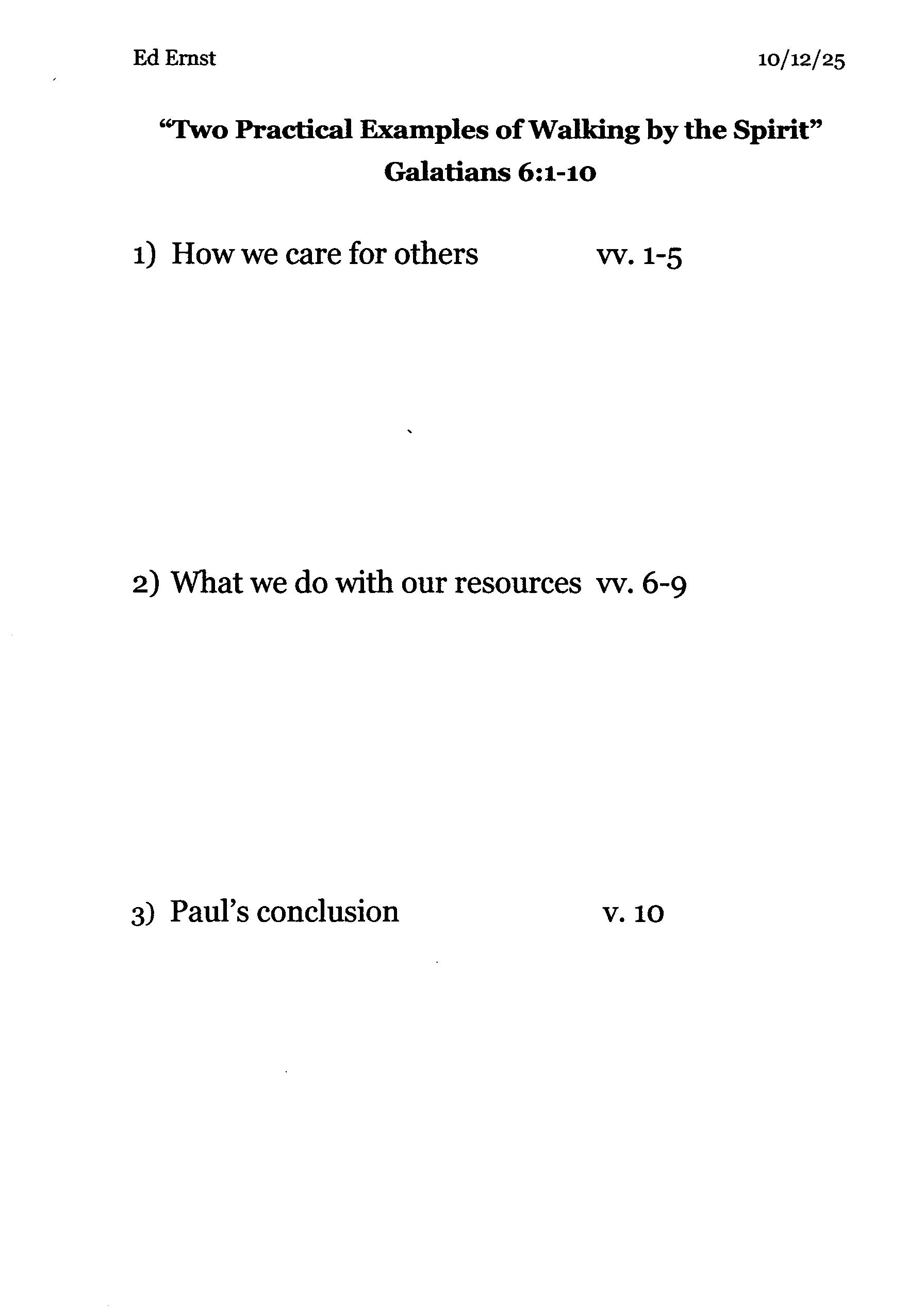 Ed Ernst 10-12-25 Galatians 6 1-10 (Ooops, beginning of message not recorded.) (Handout)