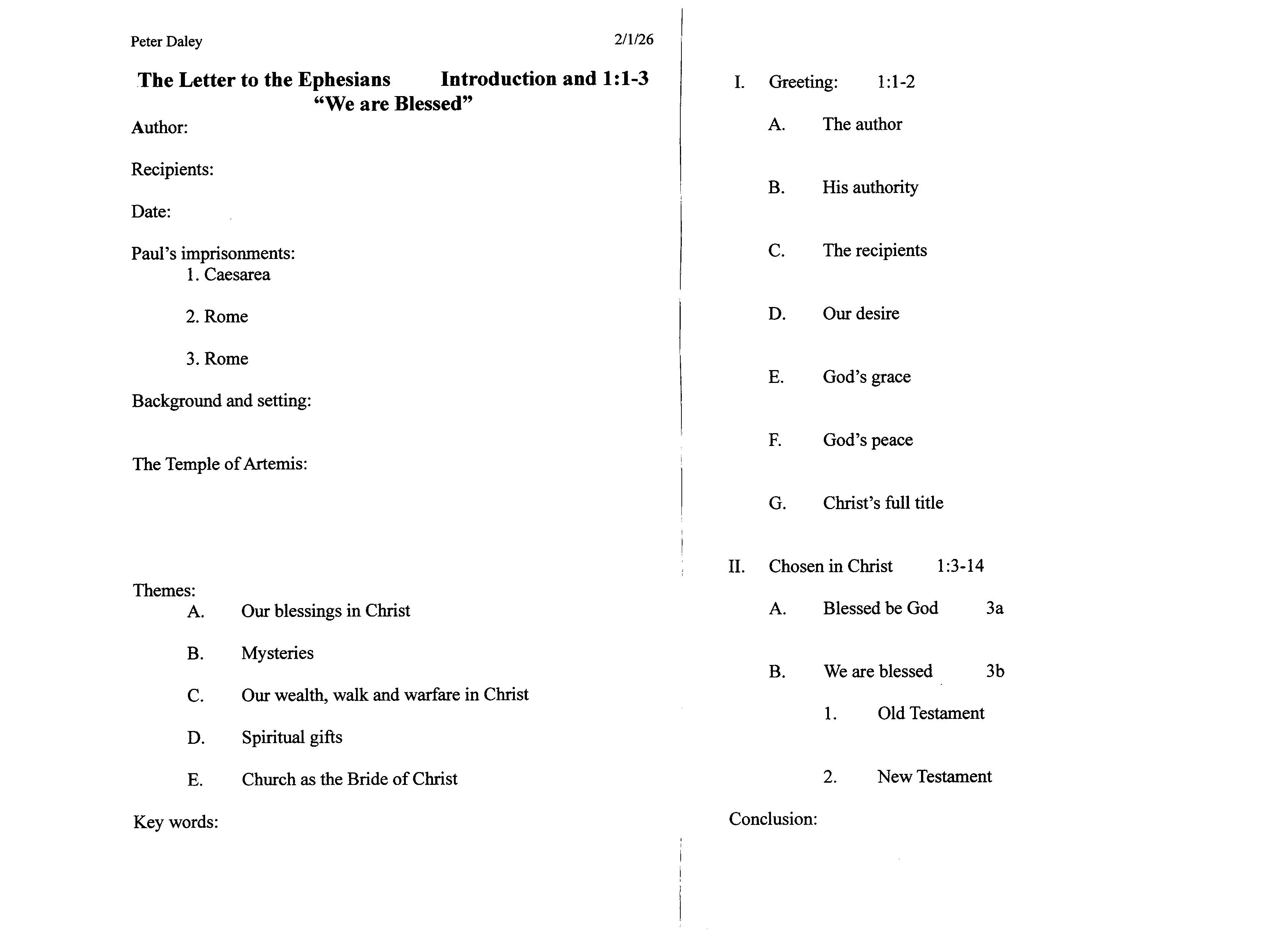 Peter Daley 2-1-26 Ephesians Intro and 1 1-3 (Handout)