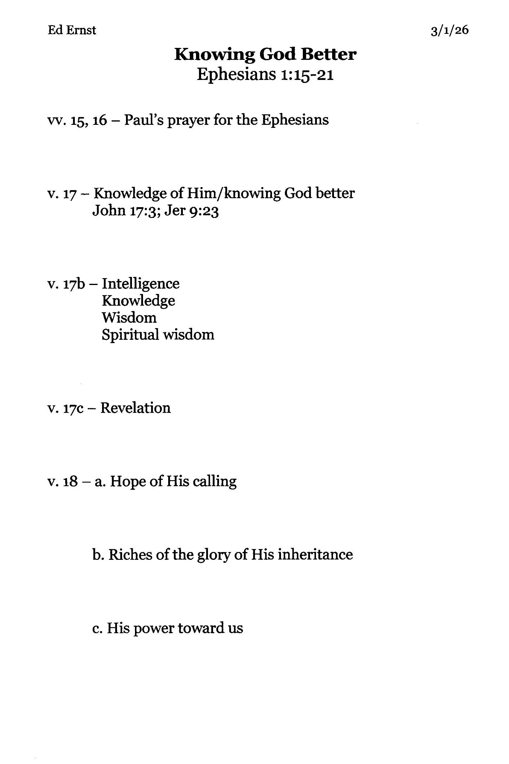 Ed Ernst 3-1-26 Ephesians 1 15-21 (Handout)