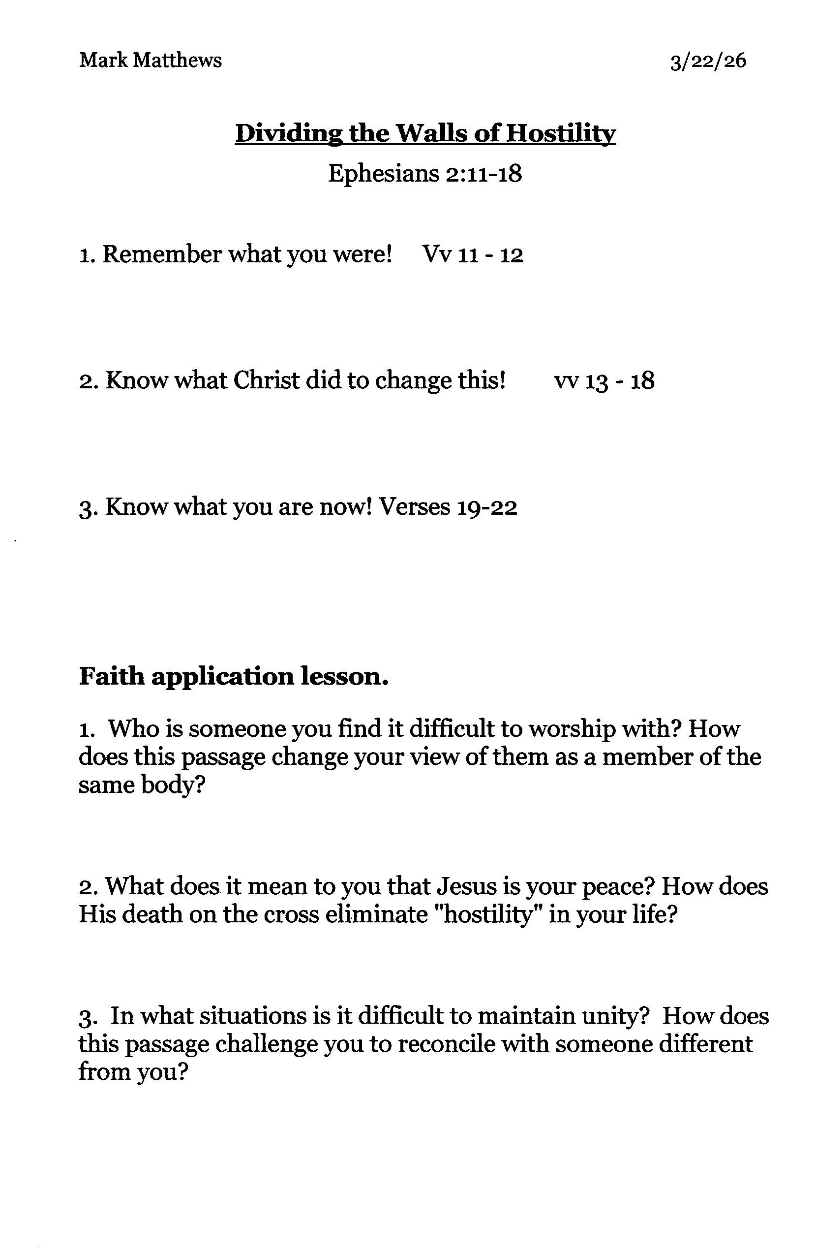 Mark Matthews 3-22-26 Ephesians 2 11-18 (Handout)