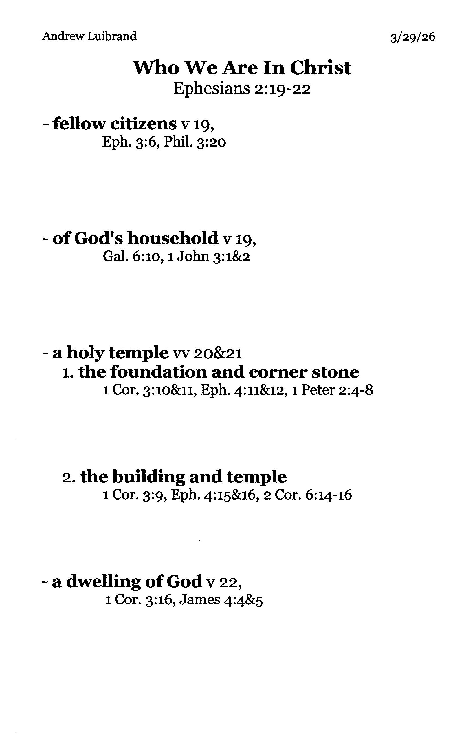 Andrew Luibrand 3-29-26 Ephesians 2 19-22 (Handout)